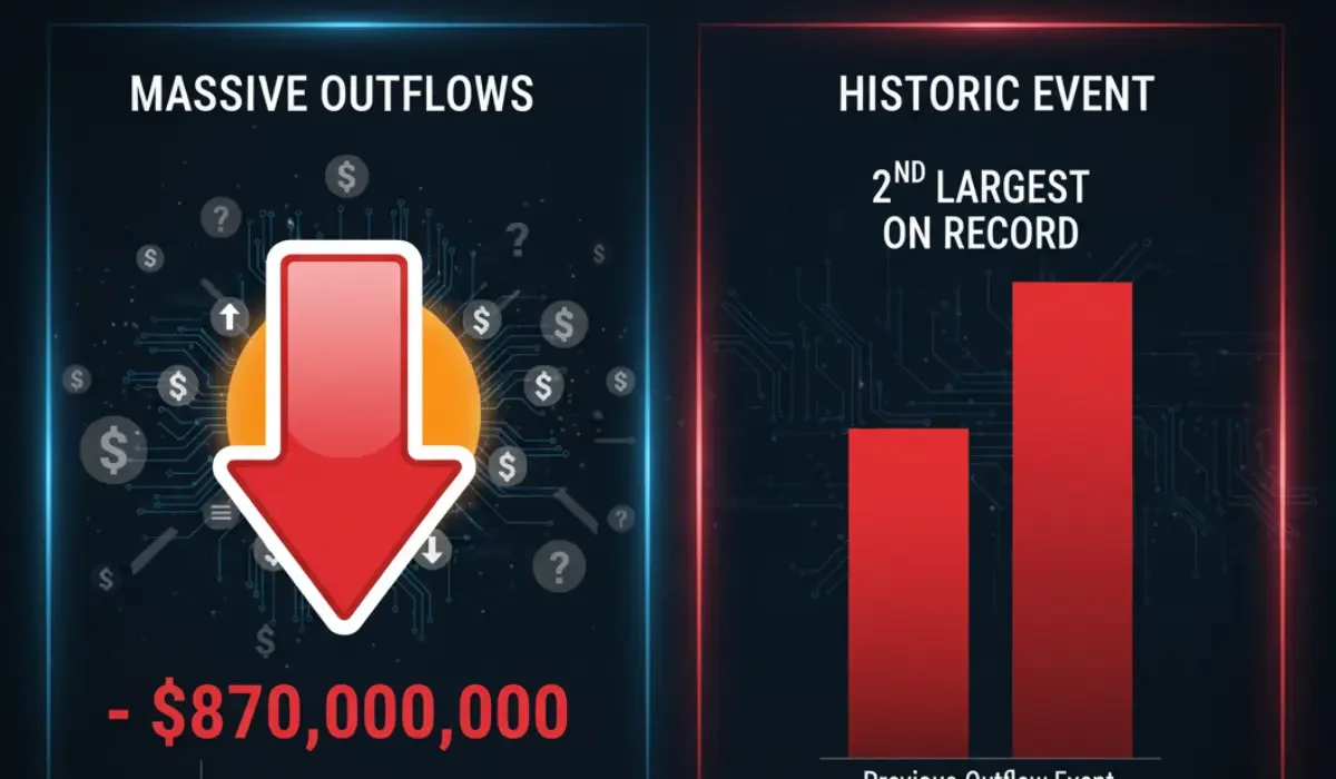 U.S. Spot Bitcoin ETFs See $870M in Outflows, Second-Largest on Record